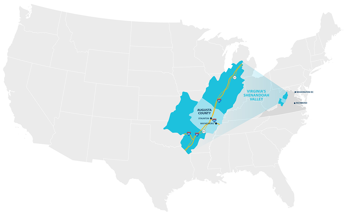 Augusta County offers a premier location in Virginia, named the #1 Top State for Business for the 6th time by CNBC. Also in America's Shenandoah Valley, the County offers a business-friendly environment and affordable tax rates. Touted for our hospitality and can-do attitude, several of America’s most well known companies have located and expanded here. Pair that with our vibrant small cities and our breath-taking natural attractions, and you’ll find the limitless opportunities we provide.